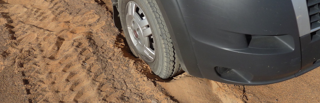 Het is niet de eerste keer dat wij uit het zand worden getrokken, maar wel met deze camper. Sleeplint vastmaken aan de achterkant van de auto, truck van Hans erachter, stuur recht houden, rijden maar en dan staan we weer op vaste bodem. Fluitje van een cent … mits je zo’n truck bij je hebt!