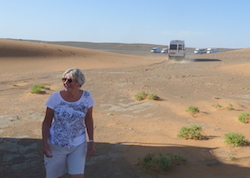 Toch is het prachtig om zo op hun rug door de ongerepte zandduinen te schommelen. De stank nemen wij op de koop toe, evenals de paar quads die de kamelen de pas afsnijden en zich vastdraaien in het zand … Eenmaal terug en op de begane grond duurt het even voor wij ons evenwicht hervonden hebben.