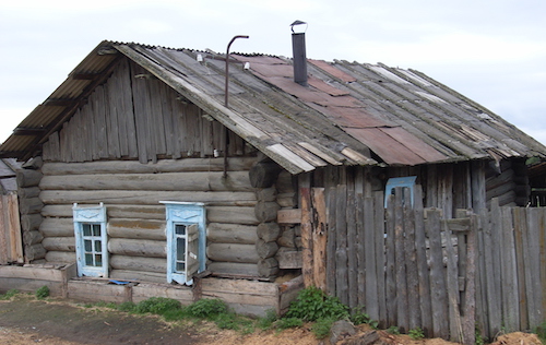 Wij zijn beland op een vrachtwagenparkeerplaats, waar noch Marijke noch ik wilden staan. Het is zo troosteloos. Er moet iets anders te vinden zijn. Gelukkig willen ze ons op deze plaats niet hebben. Twee Russische vrouwen bieden uitkomst. Ze beduiden dat er wel een betere plek te vinden is en rijden ons voor naar een dorp met een prima motel. Klein, maar ommuurd. Naast het motel staat een armoedig huisje. De kinderen die er wonen komen onze campers bekijken. Van Jan krijgen ze een bal en van ons een zakmes. De dag van hun leven.