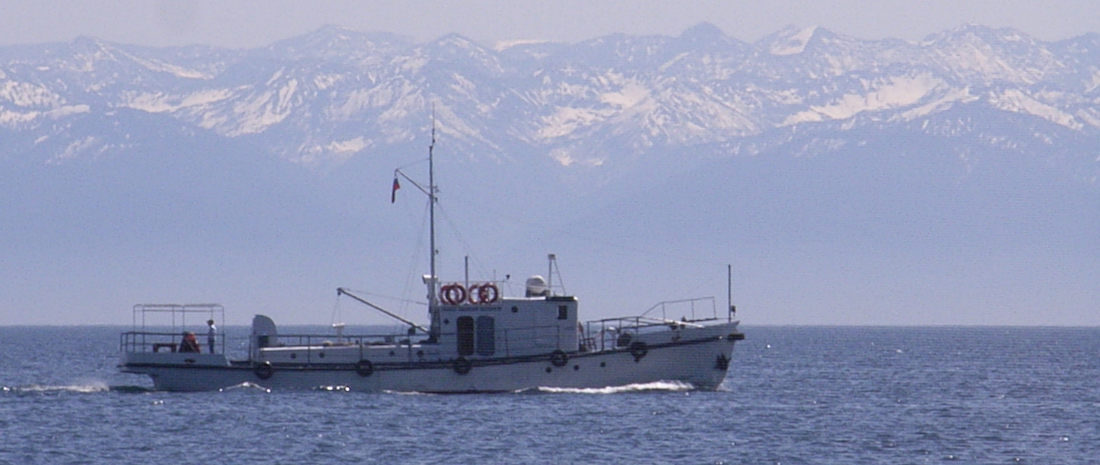 ‘s Middags worden we met een hotelbusje naar het dorp gebracht om van daaruit een boottrip op het Baikalmeer te maken. Het meer is het grootste zoetwaterreservoir op onze aarde. En waarschijnlijk 25 miljoen jaar oud. Het water is kristalhelder, je kunt tot 40 meter diepte kijken. Het nodigt uit tot zwemmen zolang je niet weet dat de temperatuur van het water in hartje zomer tussen de 16 en 18 graden is. In de winter bevriest het meer. De dikte van het ijs varieert van 70 tot 110 cm. Tot nu toe kon men in de meeste winters met de auto over het ijs rijden. De afgelopen jaren vriest het minder hard en is het gevaarlijker. Aan de overkant van het meer zien we besneeuwde bergtoppen. Een mooi gezicht. De mensen die met de Trans-Siberië Express rijden, zullen genieten van hun tocht langs het meer. We komen steeds meer Nederlandse toeristen tegen die individueel of in groepen deze tocht maken.