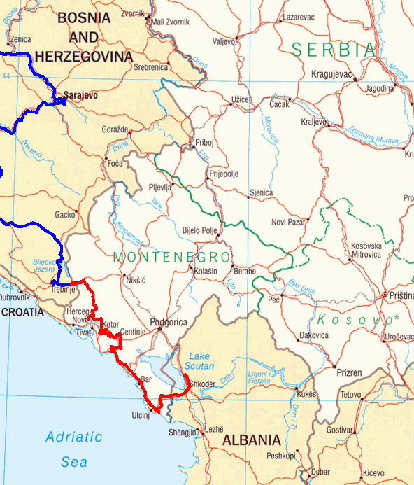 Helaas is de binnenband poreus en in deze maat in Kotor niet verkrijgbaar. Er wordt hier nauwelijks gefietst, ook al probeert men daar wel verandering in te brengen. Fietspaden zijn er niet en op de bochtige smalle wegen is het levensgevaarlijk fietsen. Een goede levensverzekering is daarom aan te bevelen ….