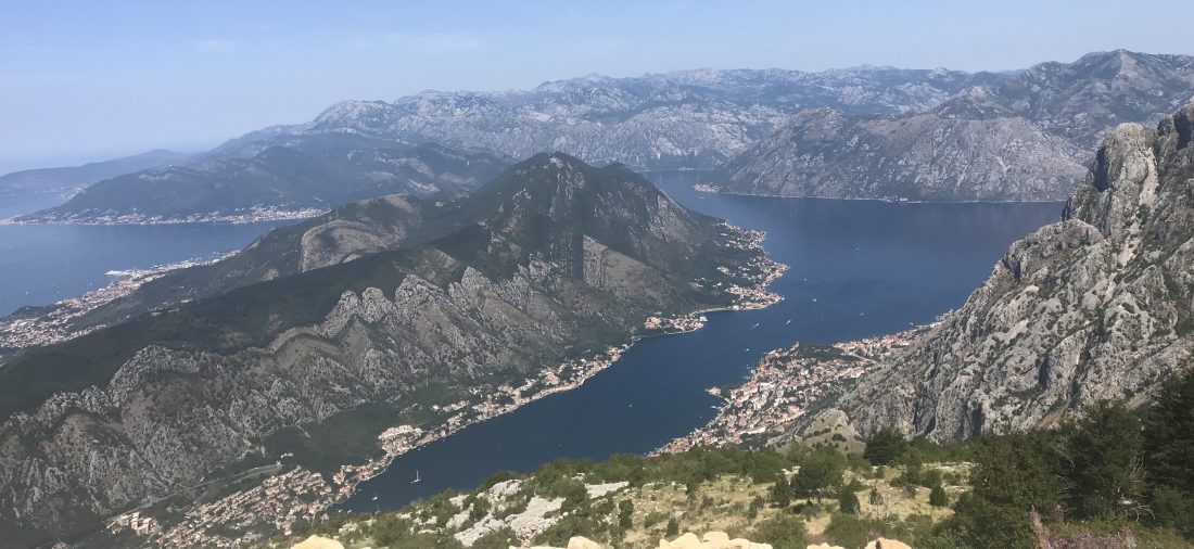 Vanaf Morinje rijden wij langs de baai en nemen dan de oude karavaanweg naar Njegusi richting Cetinje. Een weg met 25 haarspeldbochten en zo smal dat passeren alleen mogelijk is in de weinige uitwijkhaventjes.