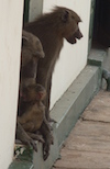 Apen springen en buitelen om ons heen. In onbewaakte momenten grissen ze alles van tafel. Dat zij zich zelf ook als hotelgasten beschouwen mag blijken uit het feit dat ik moederaap met kind uit het lady’s toilet zie komen!